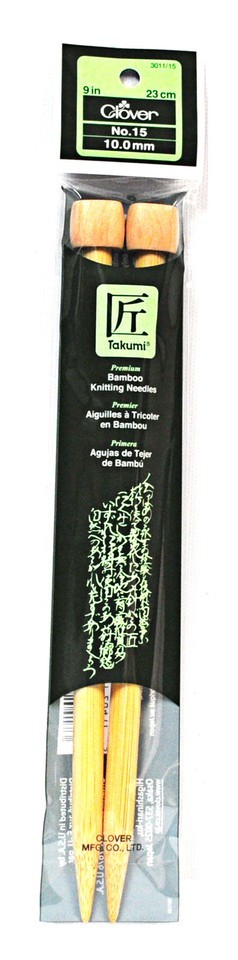 Clover Takumi Bamboo 9 Inch Single Point Knitting Needle Size 15.