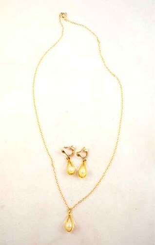 Very sweet vintage faux pearls, guaranteed to be " indestructible" according to the slip found with them. They are made to look like real gold and pearls, and it would be a sweet gift for a young girl.