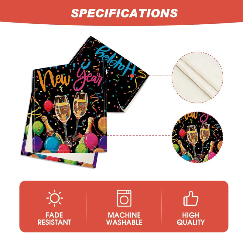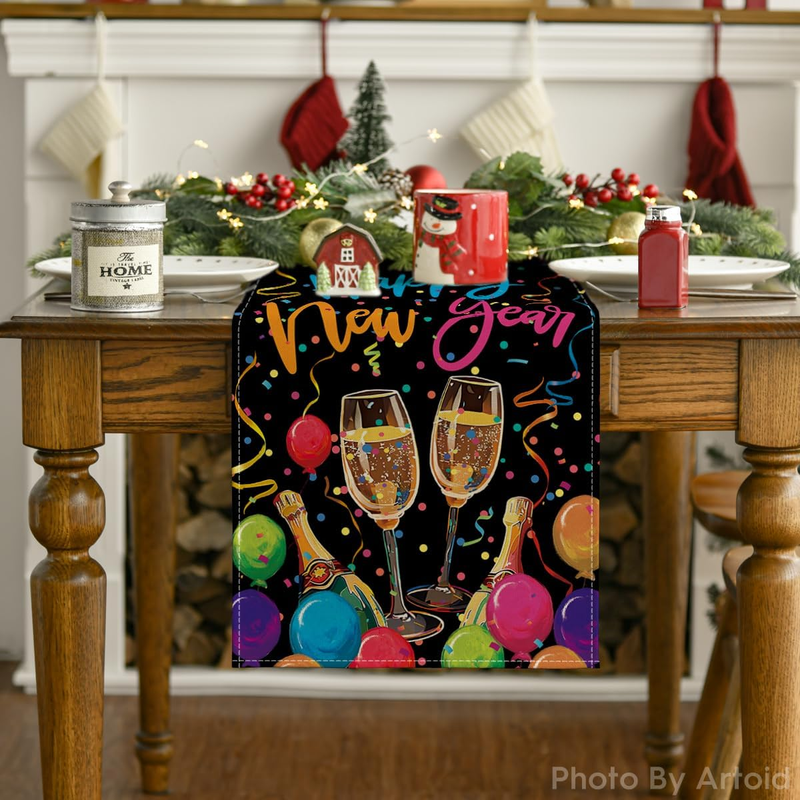 Cheers Balloon Streamers 2026 Happy New Year Table Runner, Festival Kitchen Dini