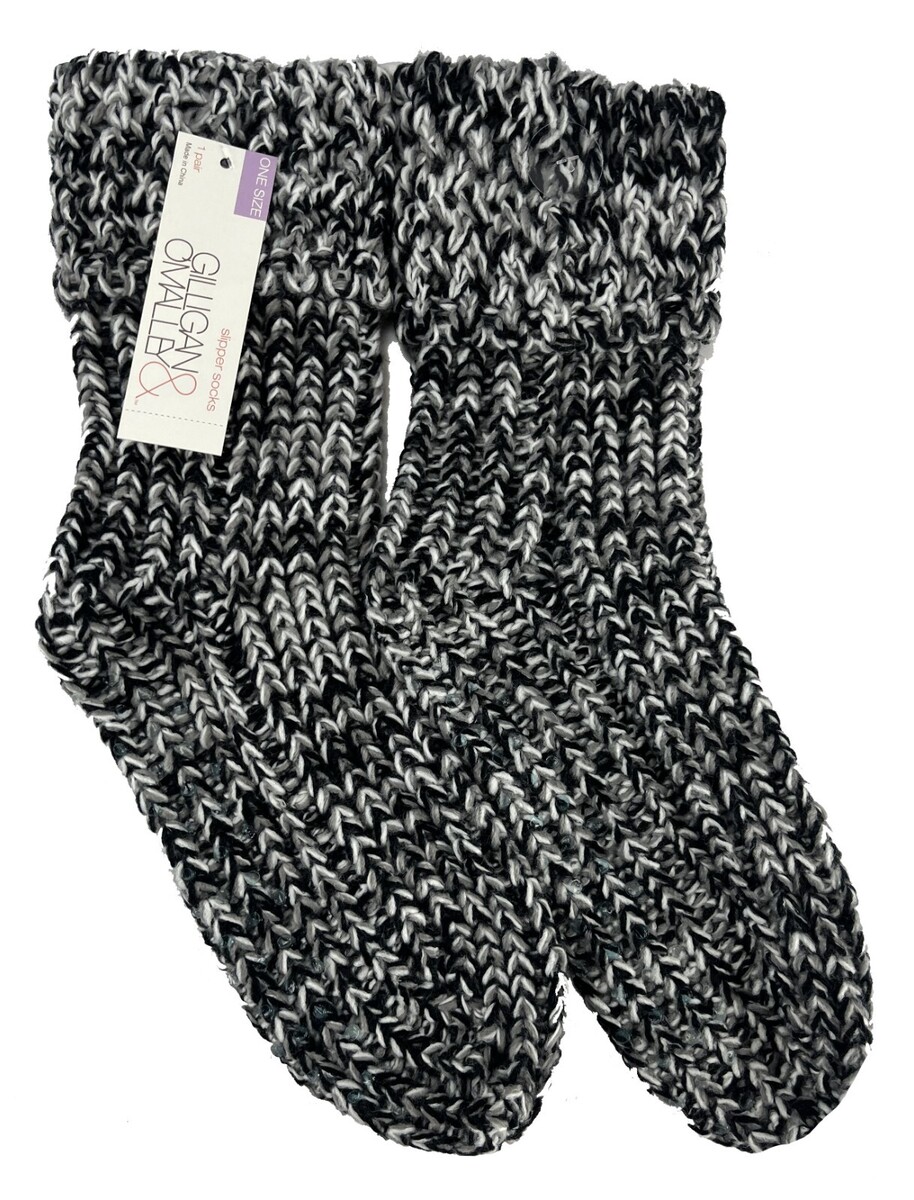 Gilligan O'Malley? Woven Slipper Socks - Black Gray - One Size - New