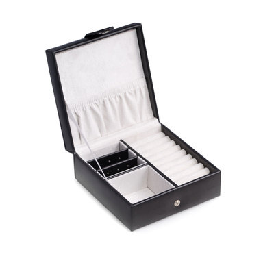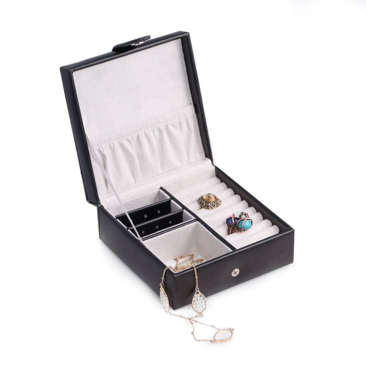 Bey-Berk Black Quilted Leather Jewelry Box for Rings earrings with Snap Closure