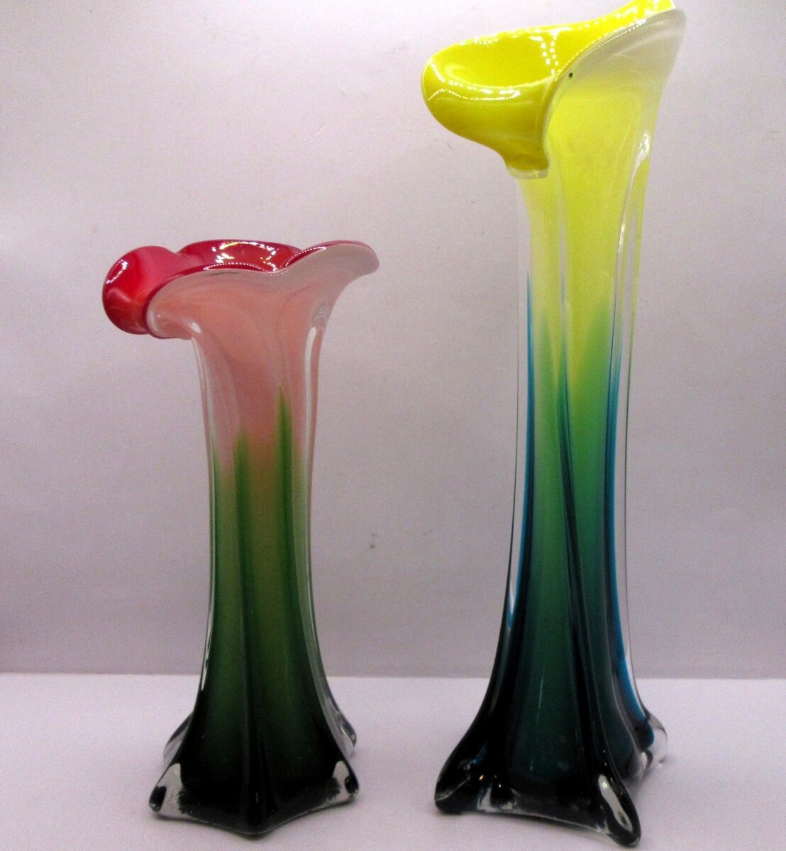 Murano Style Hand Blown Art Glass Jack in the Pulpit Calla Lily Vases