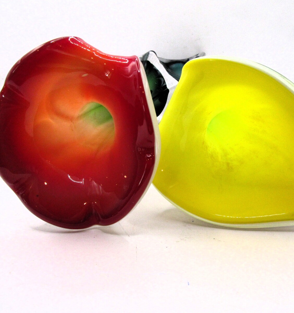 For sale there are two hand-blown art glass vases. The price listed is total for both, but I am willing to sell individually. These are referred to as "Murano style" due to the similar glass-making techniques used. The vases are hand-blown art glass, a classic example of Italian Mid-Century Modern design from the 1960s. The style is named after the Arisaema triphyllous flower, featuring a trumpet or lily silhouette with a ruffled, overhanging hood. They do not have any identifying marks to determine artist.