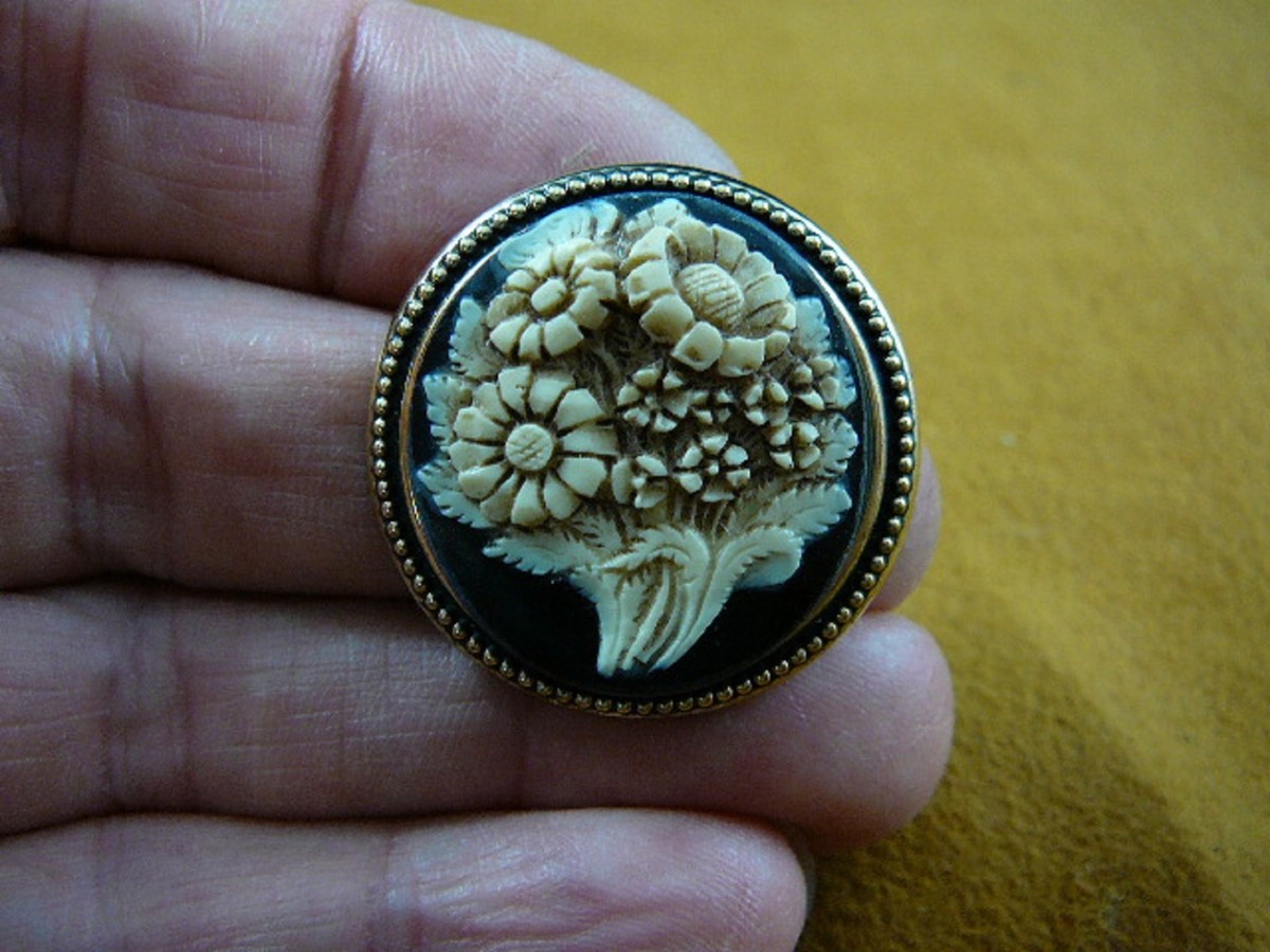 (cs15-19) Daisy FLOWER bouquet black white CAMEO Pin BROOCH JEWELRY flowers