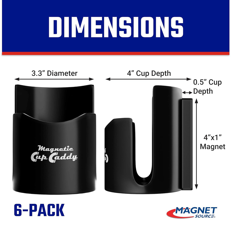 Magnetic Cup Caddy - Keep Your Favorite Beverage at Hand, 3.3" Inner Diameter, 4.625" Height, Black, Pack of 6, 07583X6