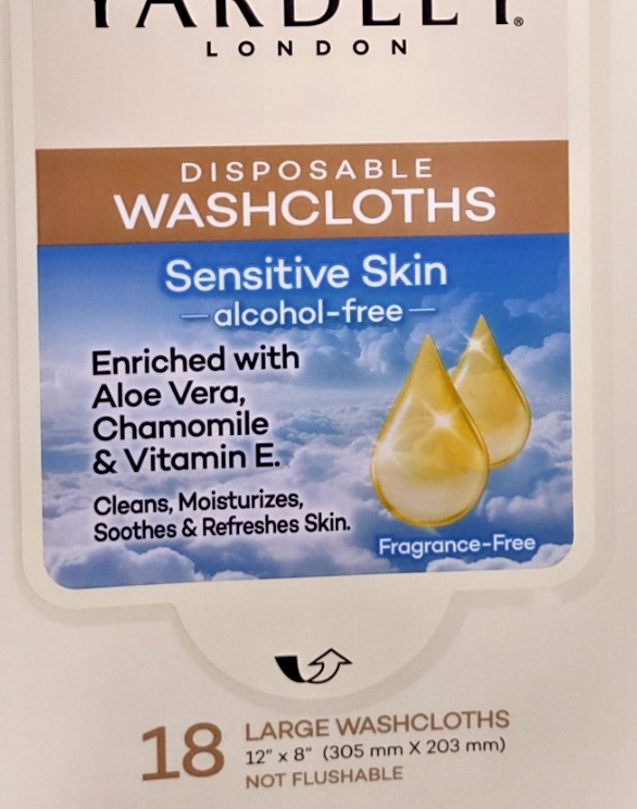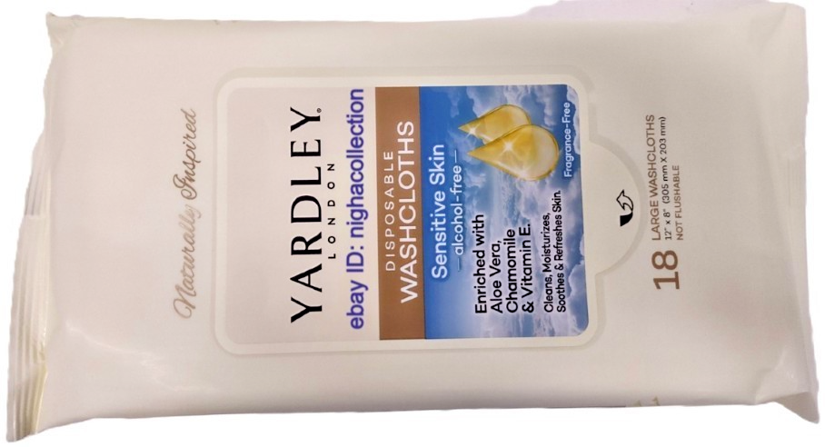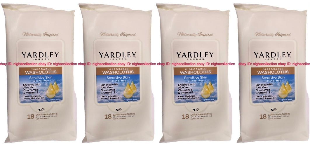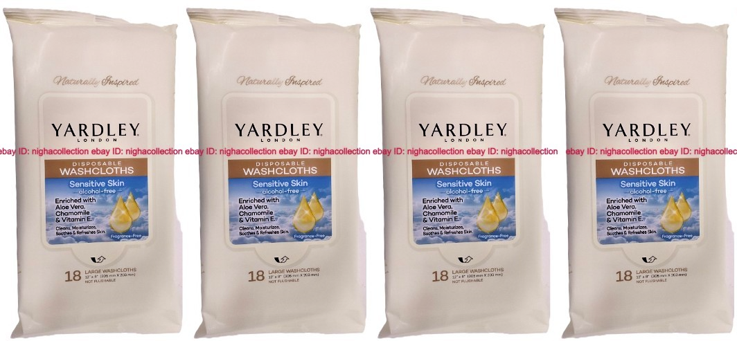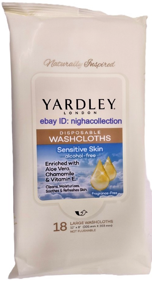 ( Lot 4 ) Disposable SENSITIVE SKIN Washcloths 18/Pk Yardley London NEW SEALED
