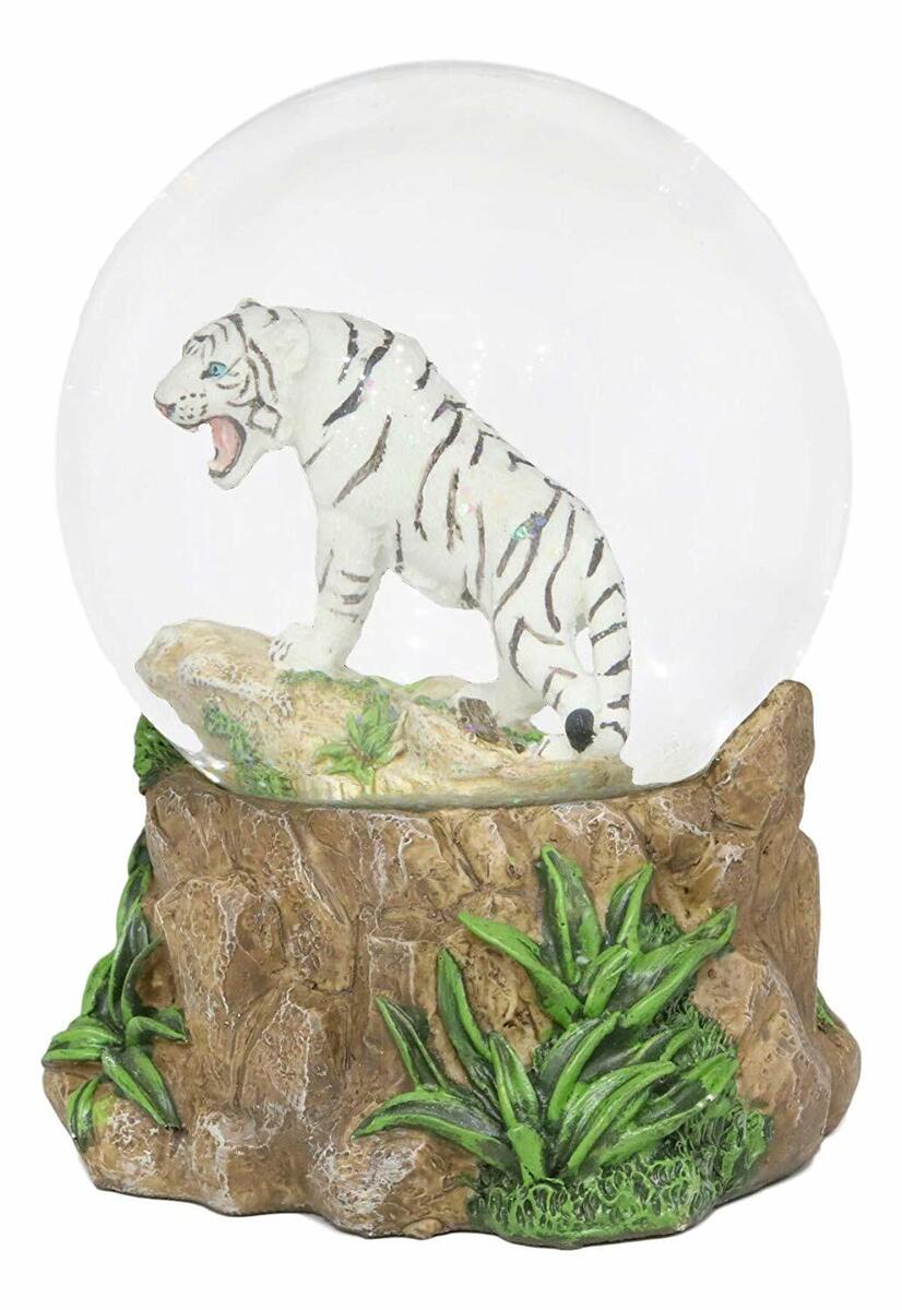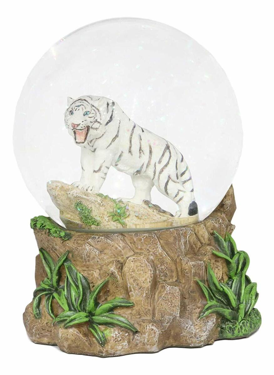 ? Are you looking for a unique gift or a collectible for yourself? This Siberian White Tiger Glitter Water Globe is a powerful and noble beast roaming the jungle. The White Tiger is seen to be in a roaring pose.