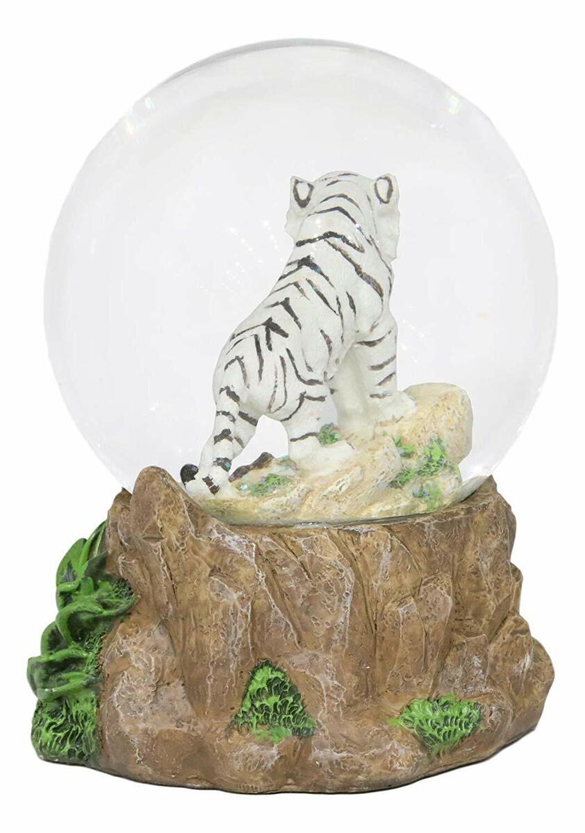 ? This Jungle White Tiger Glitter Water Globe is made of designer composite resin and glass, hand painted and polished. Color Tone may vary