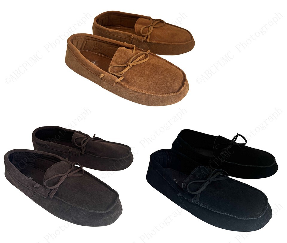 Men's Moccasin Slipper Suede Leather Insulated House Shoes, Sizes: 7-13