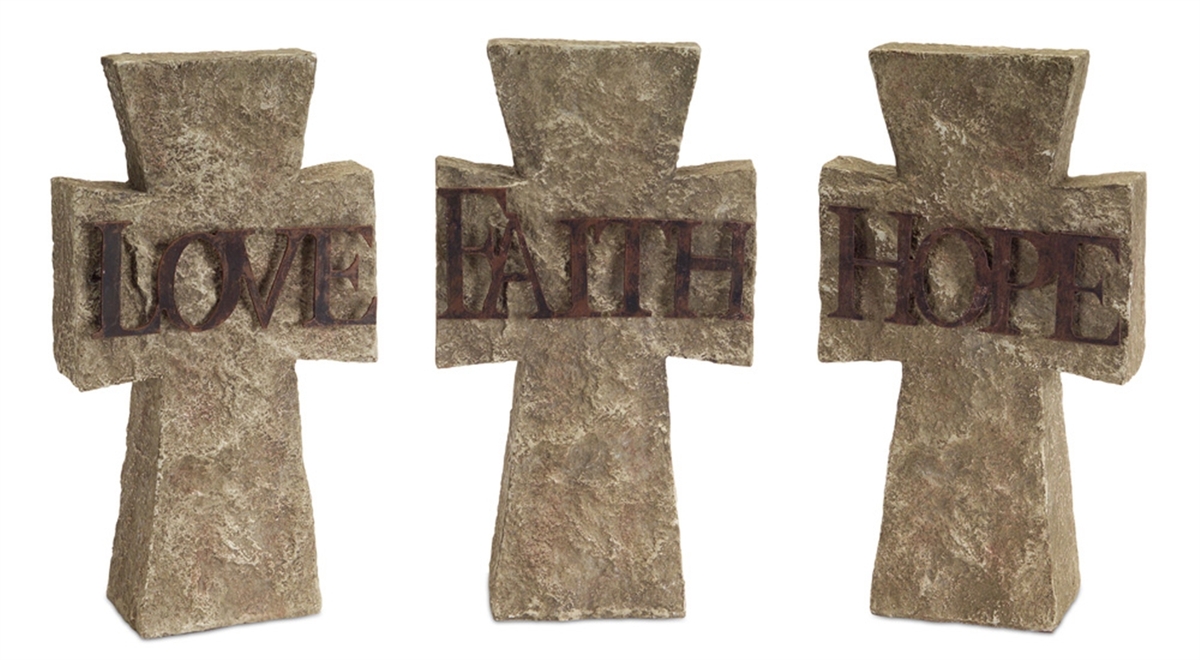 Hope, Faith, Love Cross (Set of 3) 6"Lx10.75"H Polystone
