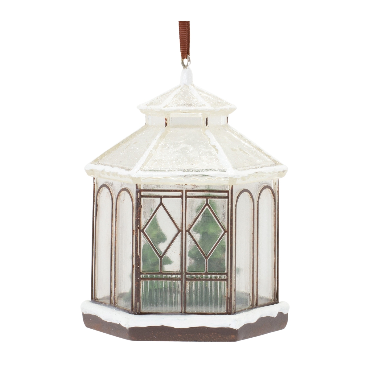 Gazebo Ornament 5.5"H Resin; Add a charming touch to your holiday decor with this Winter Gazebo Ornament Set! Designed to bring festive cheer, these beautifully crafted ornaments feature a frosted finish with classic white and green tones, evoking a cozy winter scene. Made from durable polyresin, they are perfect for enhancing your Christmas tree or gifting to a loved one. Whether for your home or as a thoughtful present, these gazebo ornaments will spread seasonal joy for years to come! Sold in a set of four matching pieces to make a statement on your Christmas tree.; Festive Winter Charm Features elegant white and green tones with a frosted design for a classic holiday look.; Durable Long-Lasting Made from high-quality resin, ensuring these ornaments remain a cherished part of your decor for seasons to come.; Perfect for Gifting A delightful holiday gift for friends and family or a unique addition to your Christmas tree.