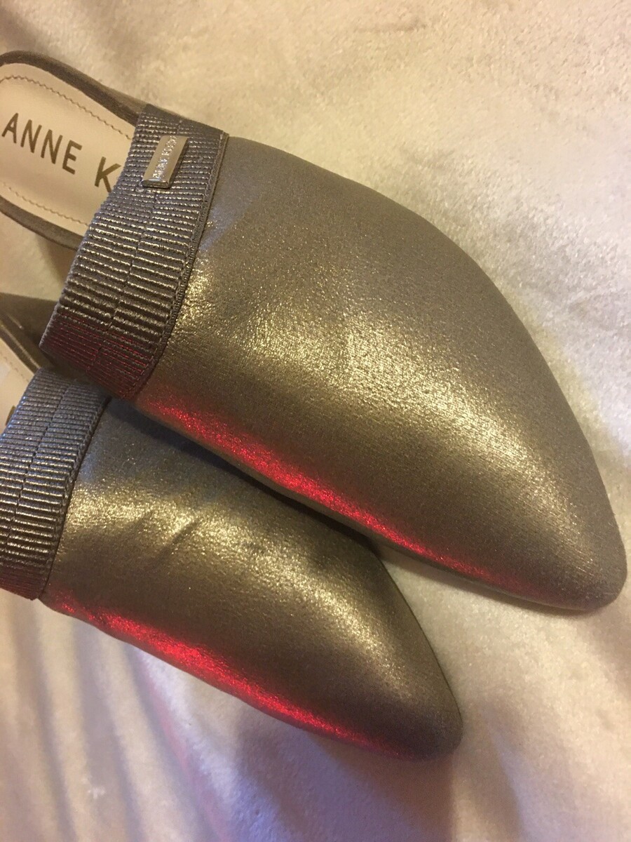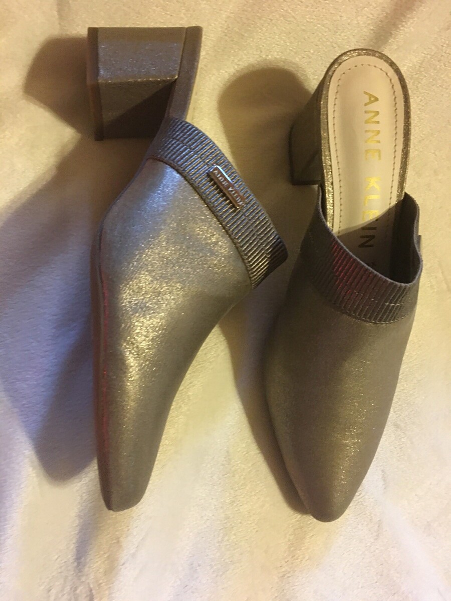 Anne Klein IFLEX Therese Metallic Taupe Pointed-toe CLOGS MULES SZ 8.5 NEW