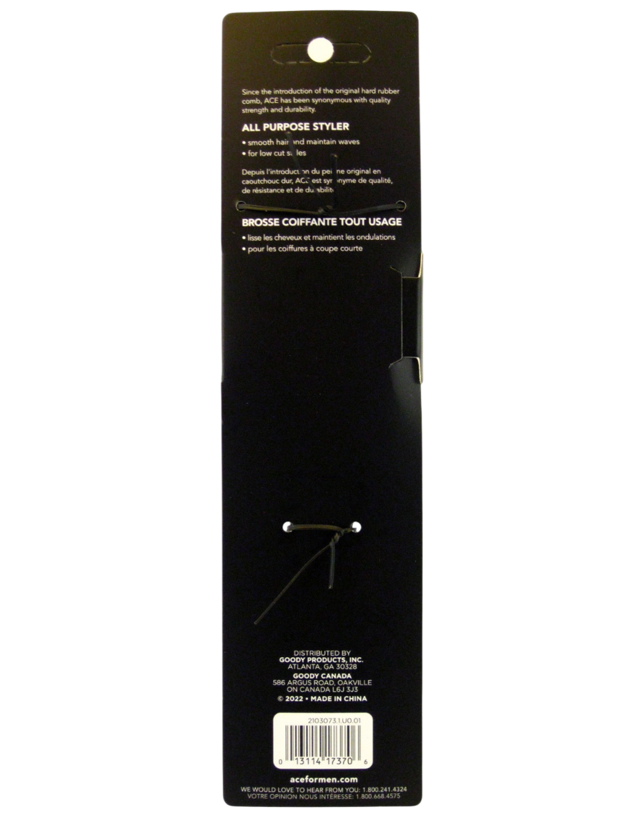Get smooth hair and maintain waves with the Ace natural boar bristle all purpose styling hair brush. With boar bristles that smooth hair maintain waves. Since the introduction o the original hard rubber comb, Ace has been synonymous with quality, strength durability which includes this wooden handled brush. The Ace boar bristle brush is perfect for low cut styles. Great for unisex adults.