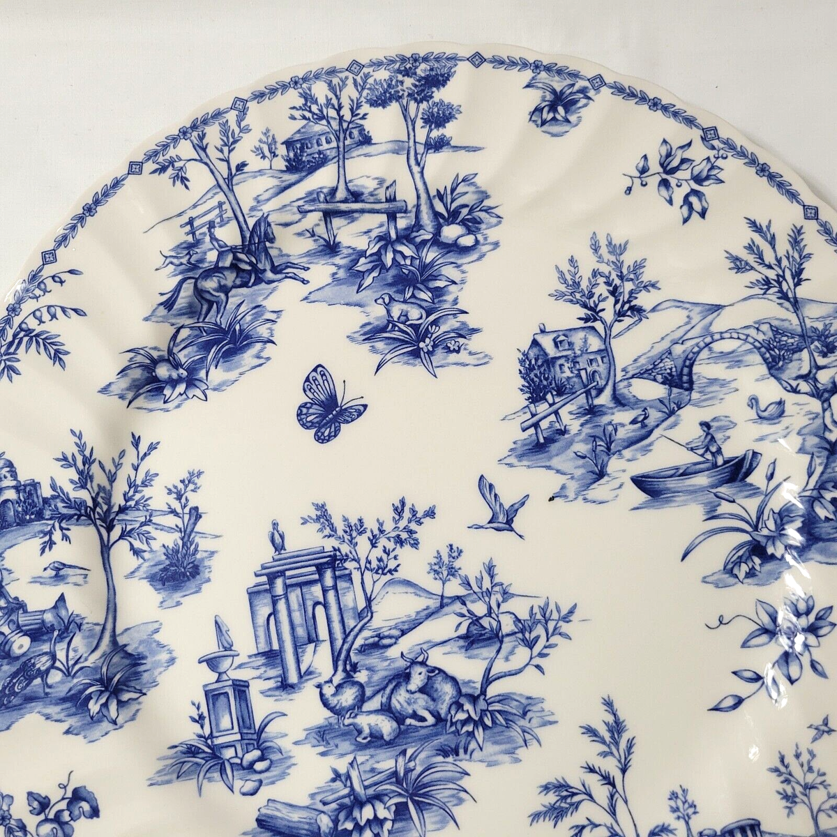 Churchill England Toile Blue 12” Round Chop Plate Serving Platter