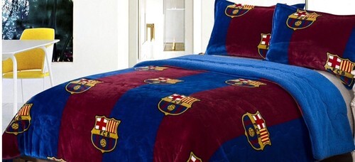 FCB BARCELONA COBERTOR COBIJA CON BORREGO SUAVE Y CALIENTE 3 PIEZAS QUEEN SIZE