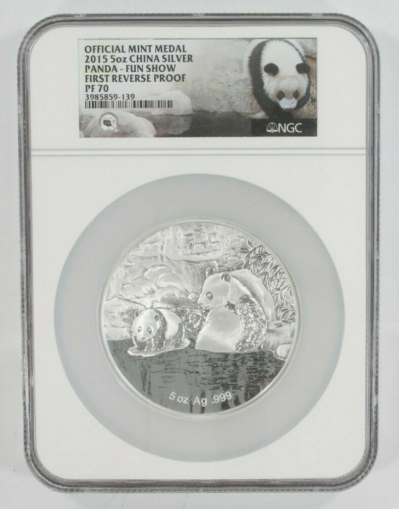 2015 5 Oz. Silver Panda - Fun Show Graded by NGC as PF 70 First Reverse Proof