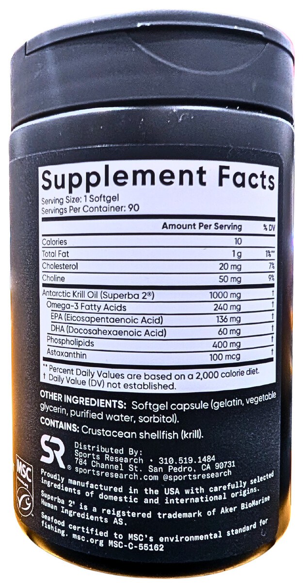 Sports Research Omega-3 Krill Oil 1000mg 90 Count Softgels