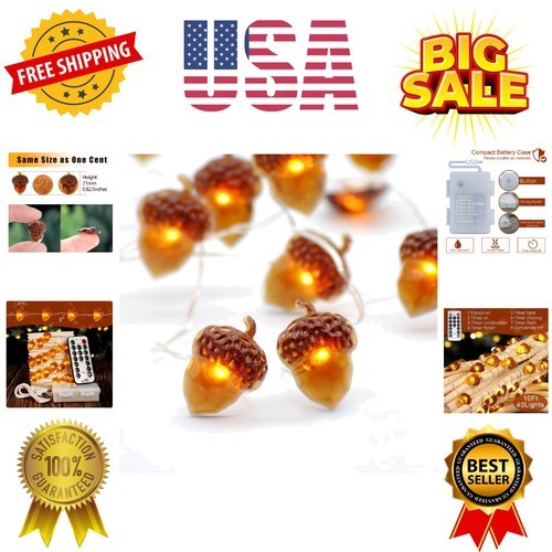 Christmas Glass Acorns Beaded String Lights Garland Fall Decor BATTERY OPERATED