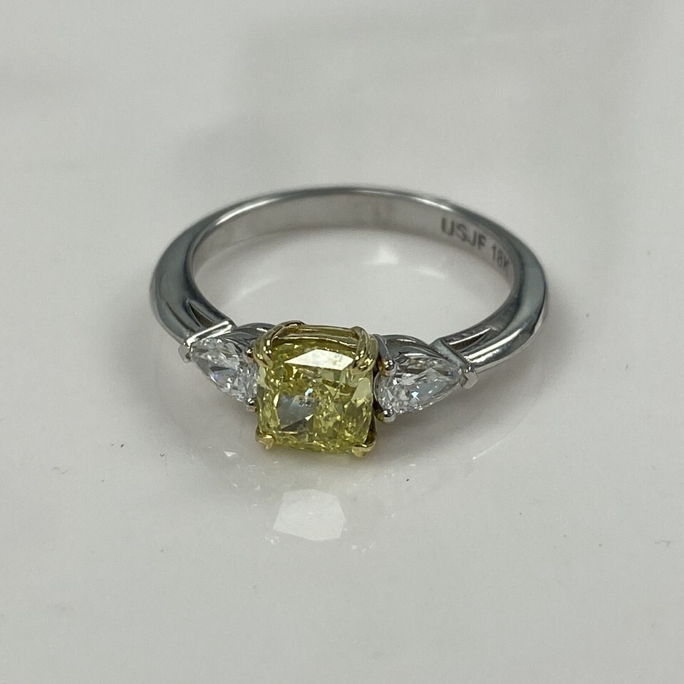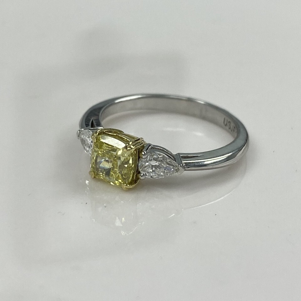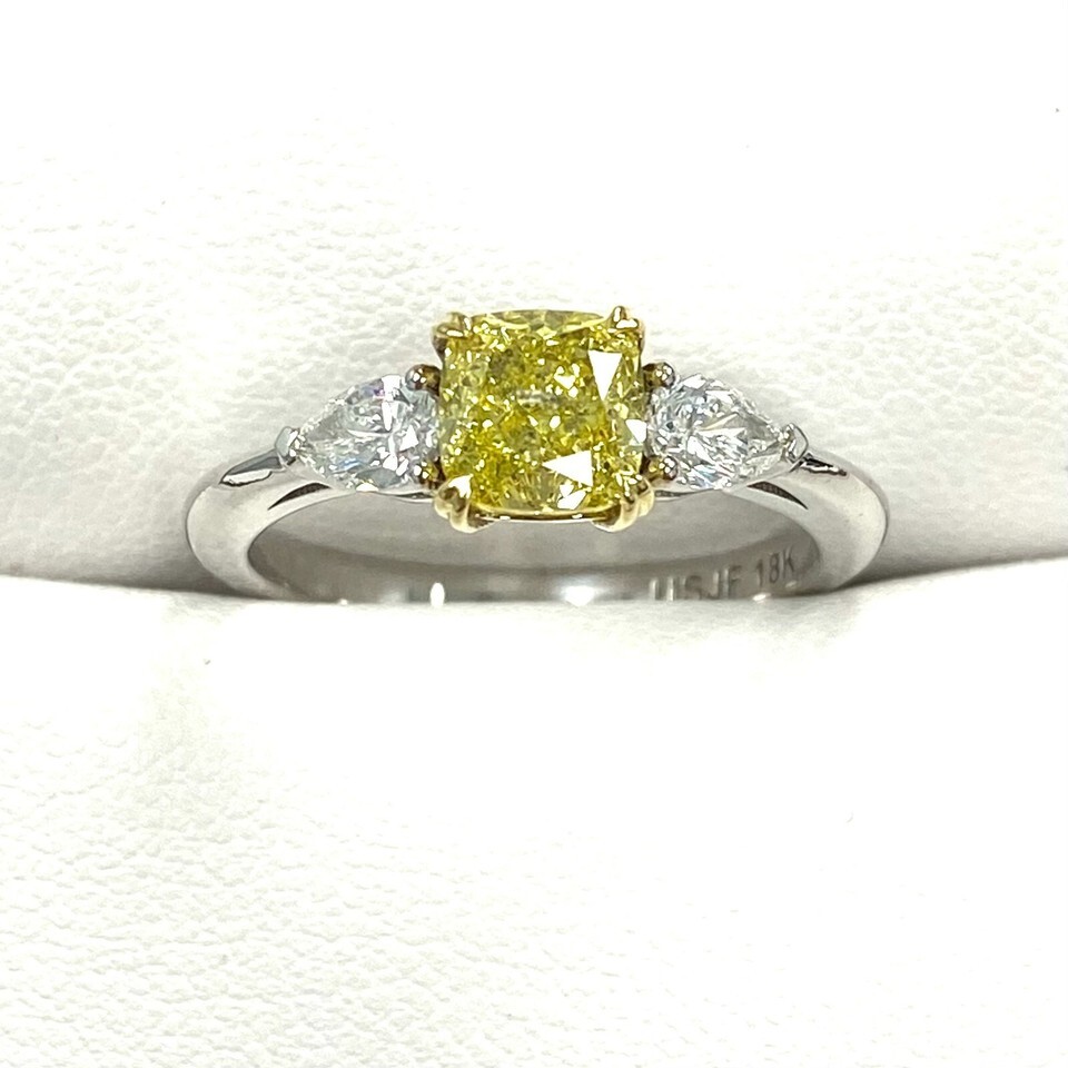 Authenticity Guarantee 3 Stone GIA 1.41 TCW Fancy Intense Yellow Diamond Eng...
