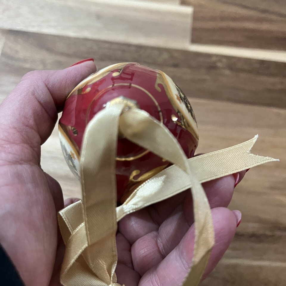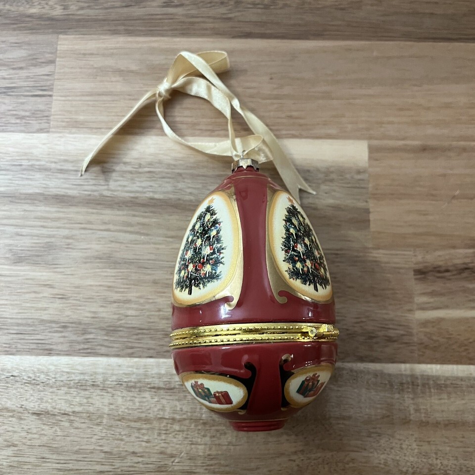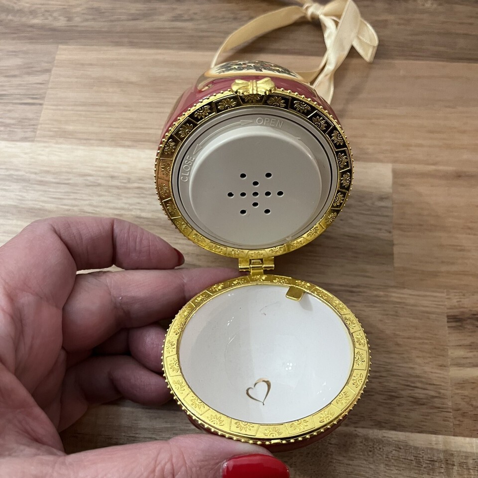 Mr. Christmas Musical Egg Ornament Music Box Porcelain Valerie Parr Hill ~ Red