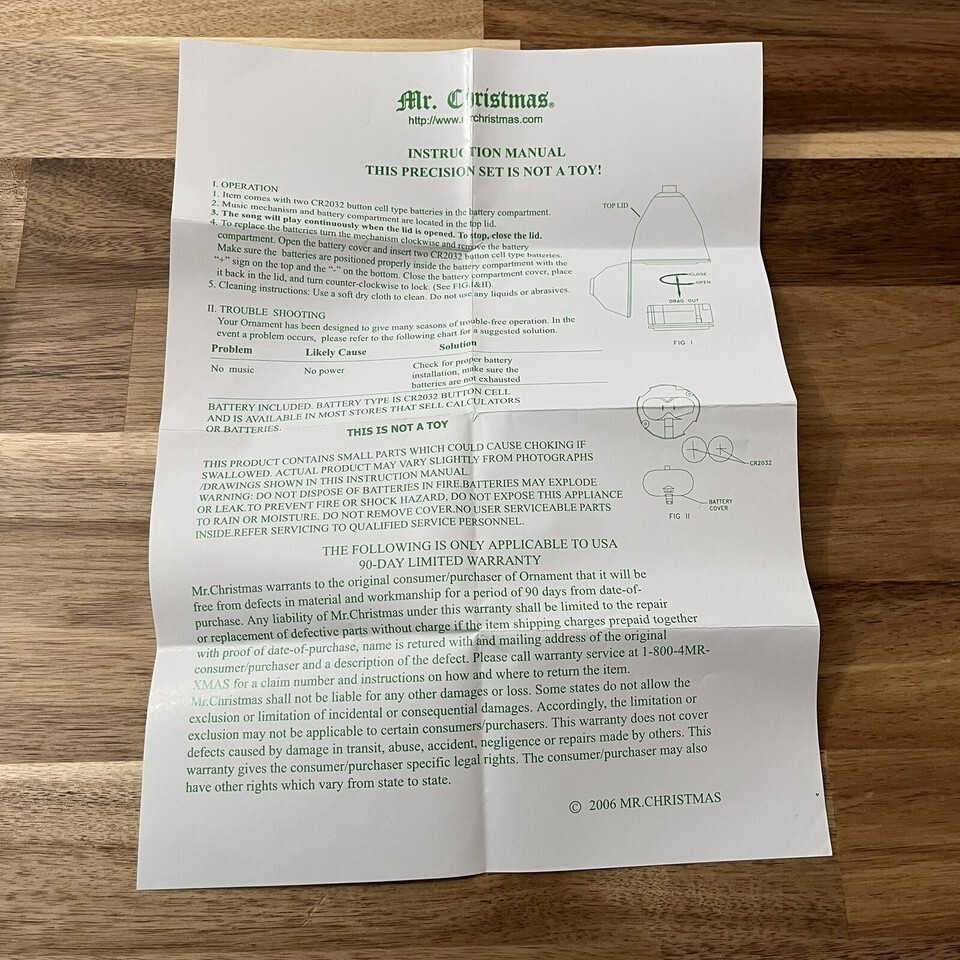 This beautiful egg shaped ornament works perfectly. It comes with two batteries, and when you open the egg, it plays silent night. When you close the egg, it stops I don?t see any chips or cracks, or anything else that would be considered a flaw on this.