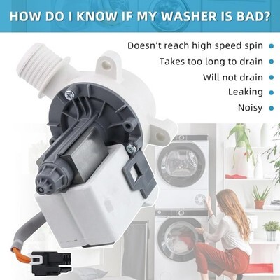 Replaces common OEM part numbers including WH23X28418 and WH23X24178. This pump resolves common washer issues such as slow draining, failure to drain, noisy operation, or inability to reach high-speed spin.