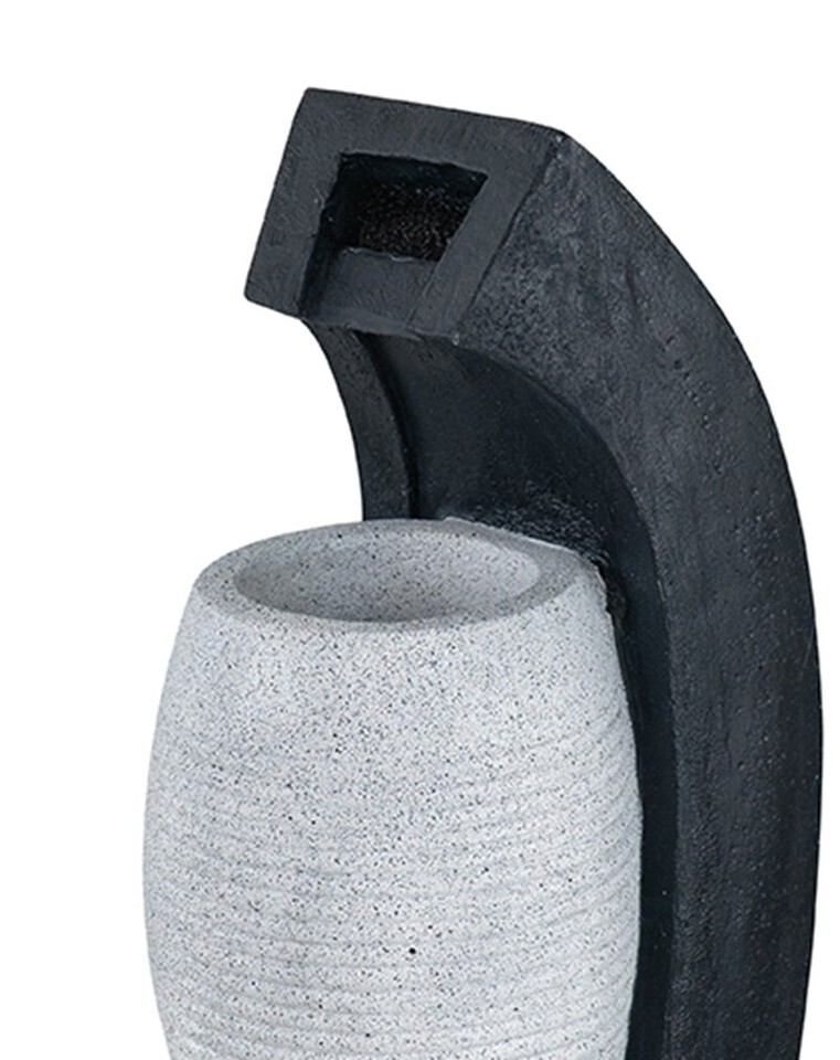 With its curving black base, warm white vase basin, and cascading stream of water, this decorative fountain will introduce a simple yet captivating burst of style to your garden or home. Crafted from durable, weather-resistant polyresin, this piece also provides long-lasting protection from the elements. Simply choose your spot, follow the easy set-up instructions, and enjoy the calming ambiance.
