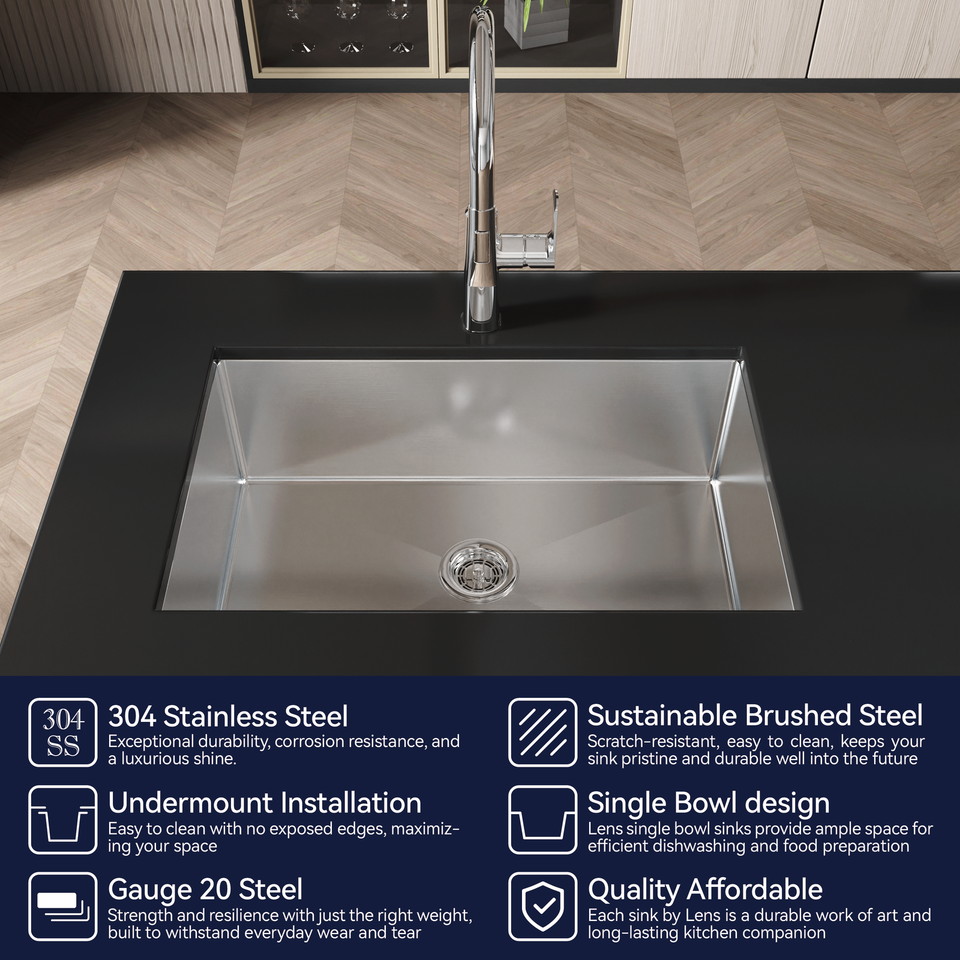 3 mm THICKER MATERIAL FOR EXTRA DURABILITY: The single bowl kitchen sink is made of SUS304 premium stainless steel that is easy to clean, and durable with resistance to stains, scratches, and corrosion. The thickness of the sink edge is 3 mm ensuring that the edges will not warp. The stainless steel sink is ideal for most kitchen appliances.