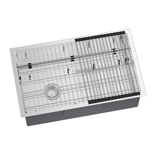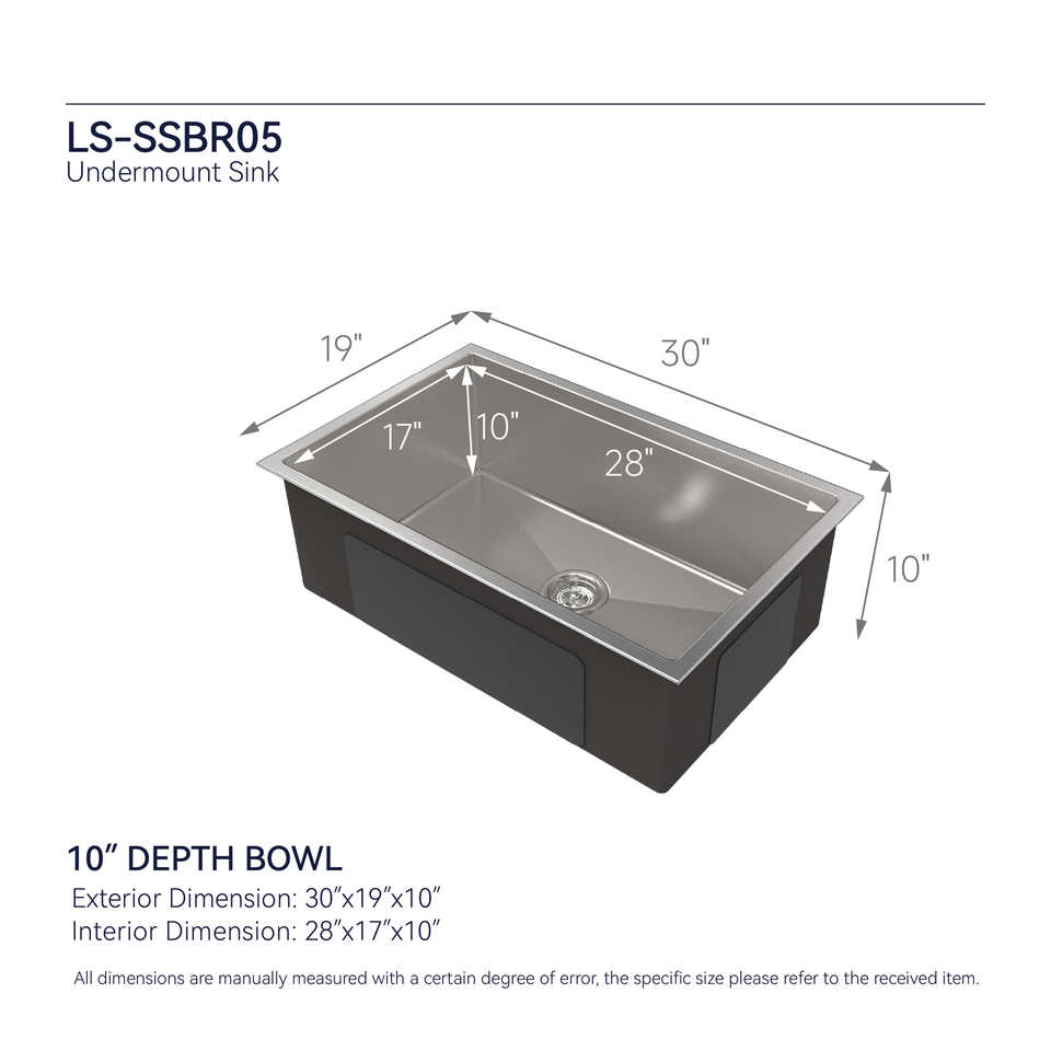 30 INCH WORKSTATION KITCHEN SINK: 30' (wide) x 19' (length) x 10' (depth). The drop-in kitchen sink's exterior design ensures a modern and elegant aesthetic while maximizing the available space to accommodate large dishes pots and pans.
