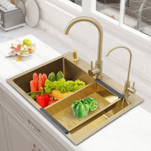 PRACTICAL PERFORMANCE: R10 radius rounded corners for easy wiping of sinks; Anti-condensation coating reduces condensation and prevents moisture buildup; Thick silicone pads reduce noise and sound; The openable lid at the top of the pipe stops food debris from clogging the pipe opening. For everyday meal preparation or hosting a great party, this kitchen sink is a functional, intelligent kitchen must-have.