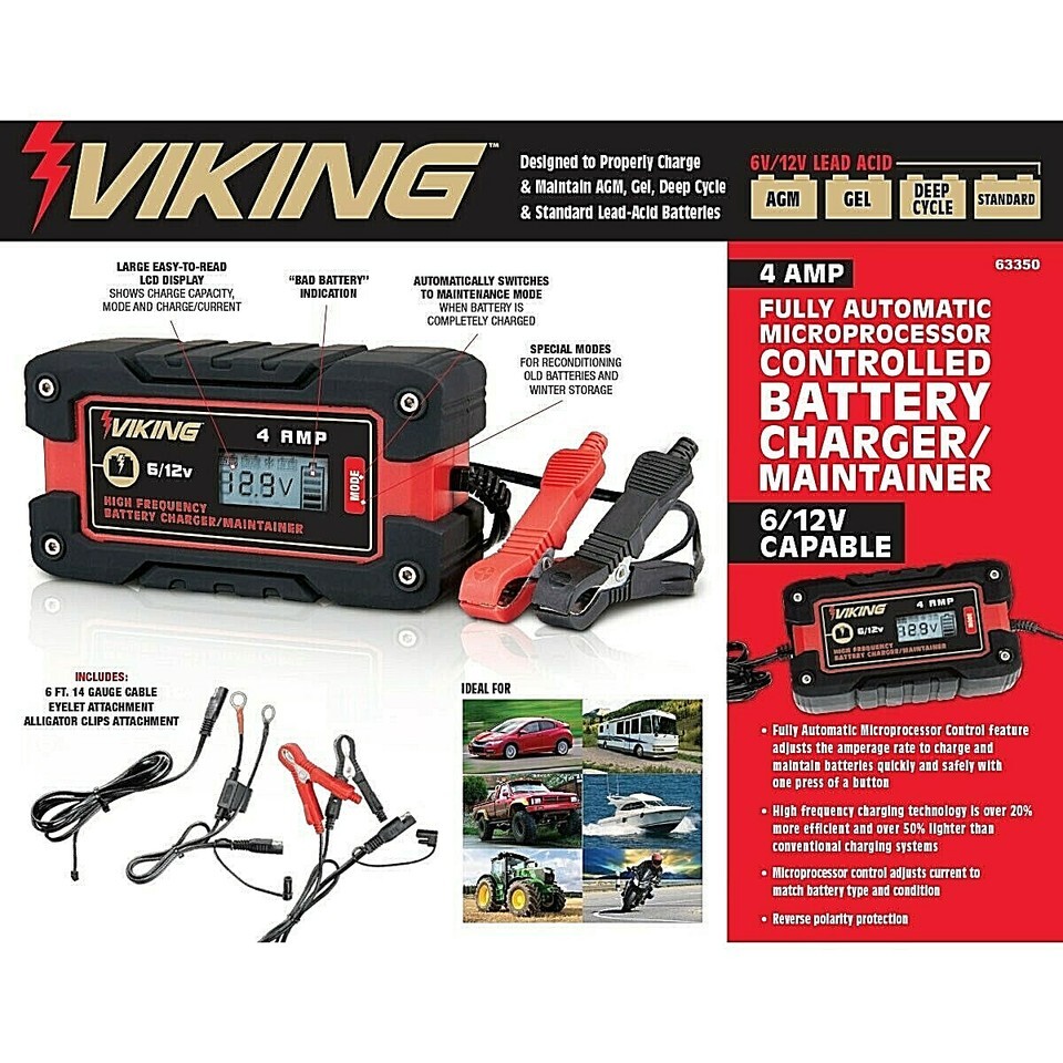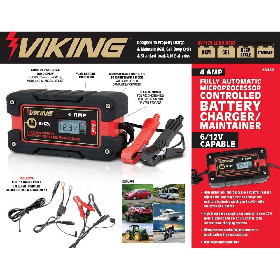 VIKING 4Amp Fully Automatic Microprocessor-Controlled Battery Charger/Maintainer