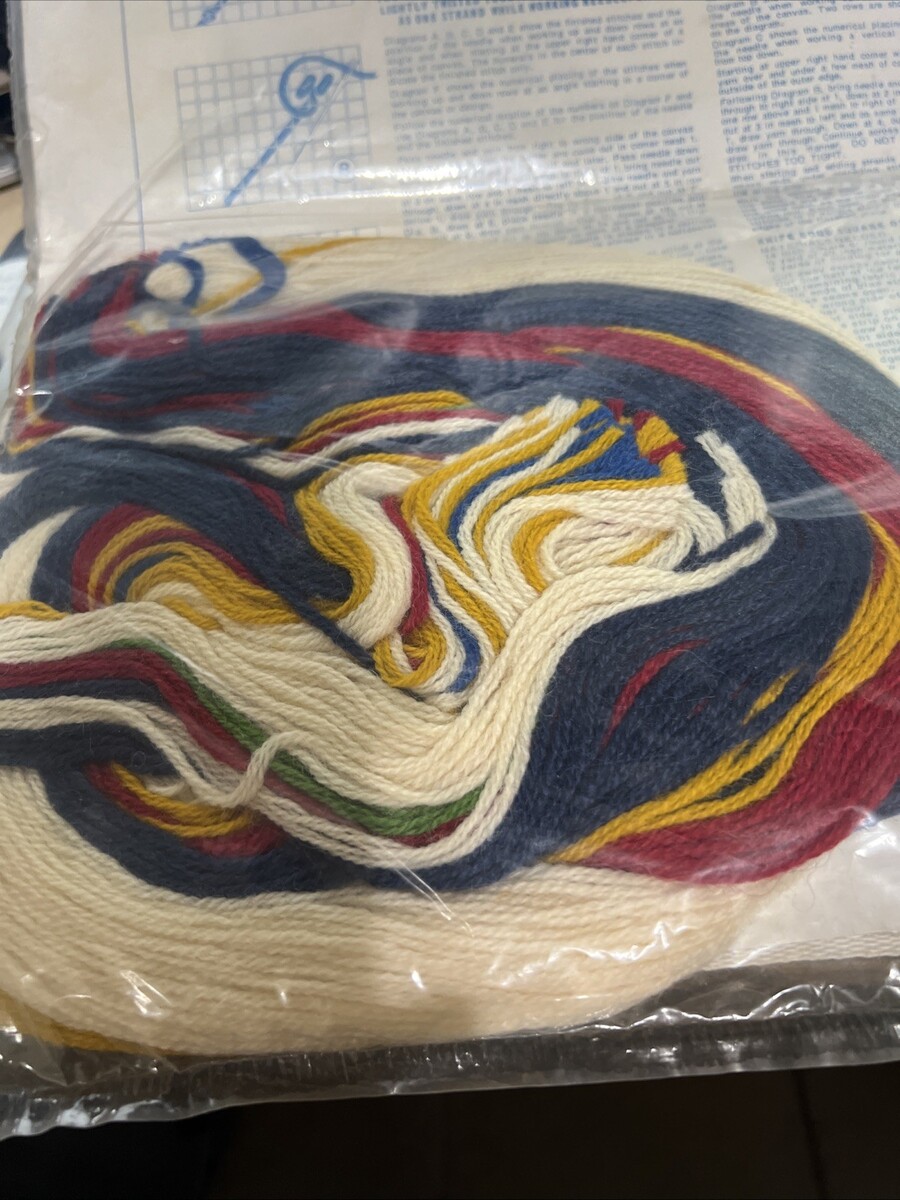Spinnerin Needlepoint Kit NP70 18” x 19” Fan Blue Yellow Red Round Emblem Flower