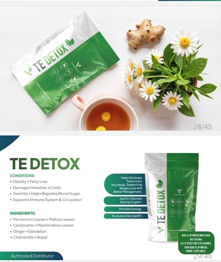TE DETOX by Vitalhealth - Herbal Detox Drink 1 Pack Makes 1 Gallon.All Natural Detox Cleansing Tea 4 bags. Vitahealth Detox Tea All Organic Healthy Cleansing Formula, Caffeine Free All Natural Colon Cleanse Digestive Tea and Body Detox, Blended Herbs - Original Flavor 0.3oz formulated with 12 of the most powerful ingredients known to naturally cleanse, detoxify and bring balance back to the mind and body. formulated with 12 of the most powerful ingredients known to naturally cleanse, detoxify and bring balance back to the mind and body.