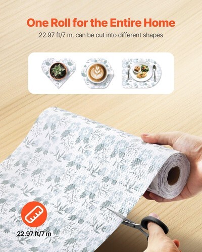 23 FT Roll for DIY Cuts: The 23 ft roll is easily cut to any space. The kitchen cabinet liner is nice for kitchens, bathrooms, and offices; it combines practical functionality with an elegant look, keeping your home beautifully organized