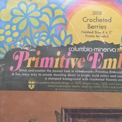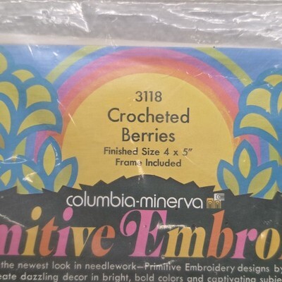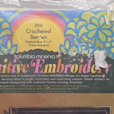 Columbia Minerva Primitive Embroidery Crocheted Berries Kit #3118 Vintage 1972. Images show actual item that will ship.