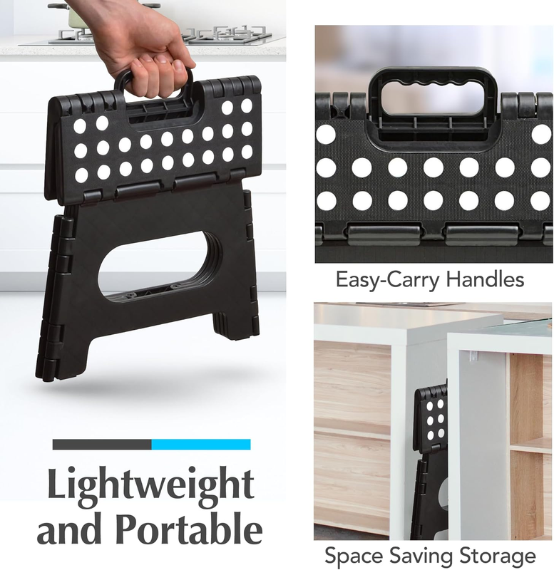 Folding Step Stool - Sturdy Enough Collapsible Stool to Support Adults and Safe Enough for Kids - Opens Easy with One Flip - Great for Kitchen, Bathroom or Bedroom (Black - 9 Inch)