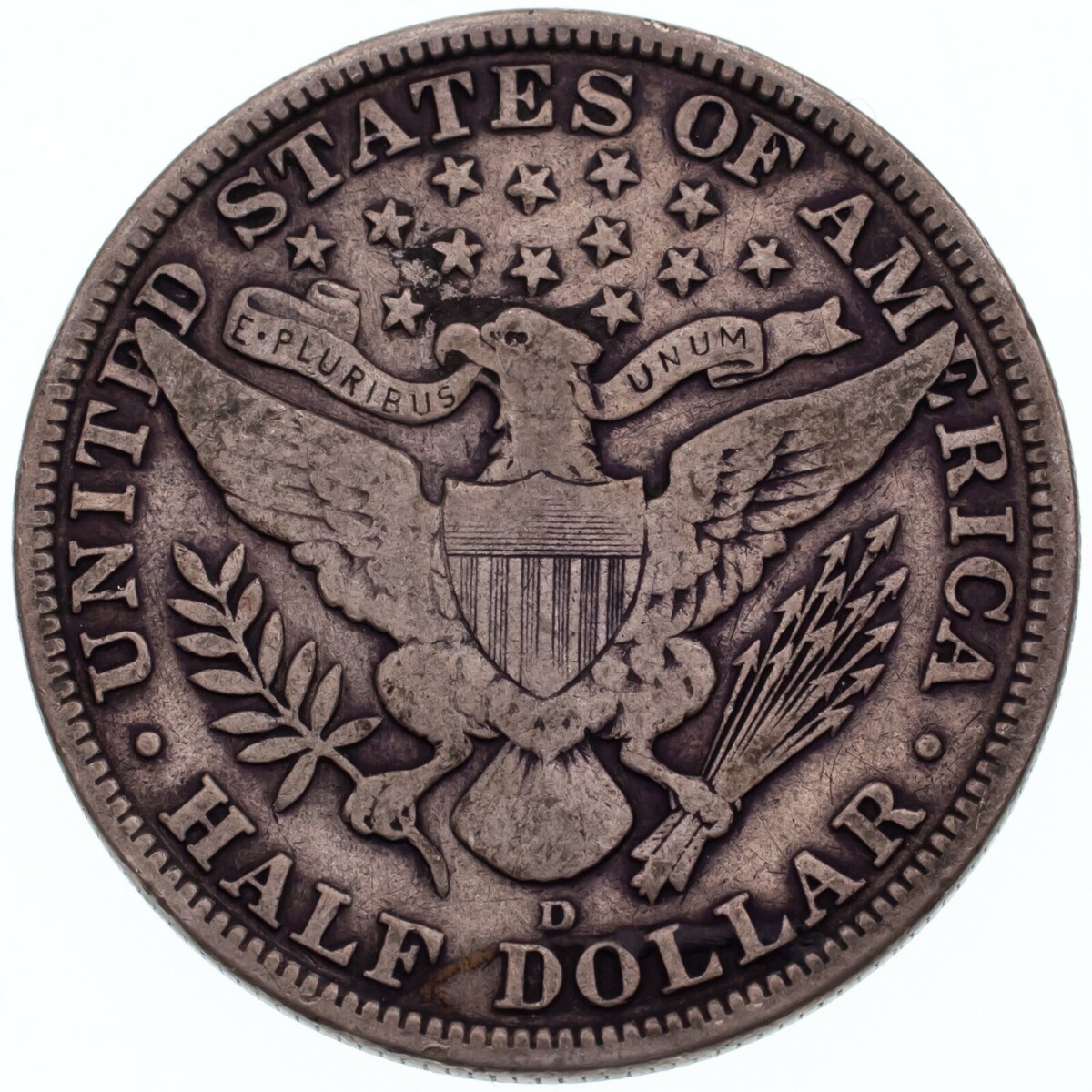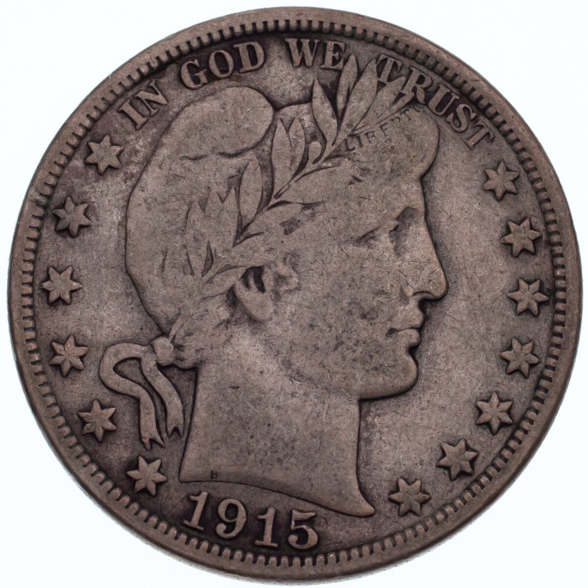 1915-D 50C Barber Half Dollar in Fine Condition, Natural Color, Full LIBERTY
