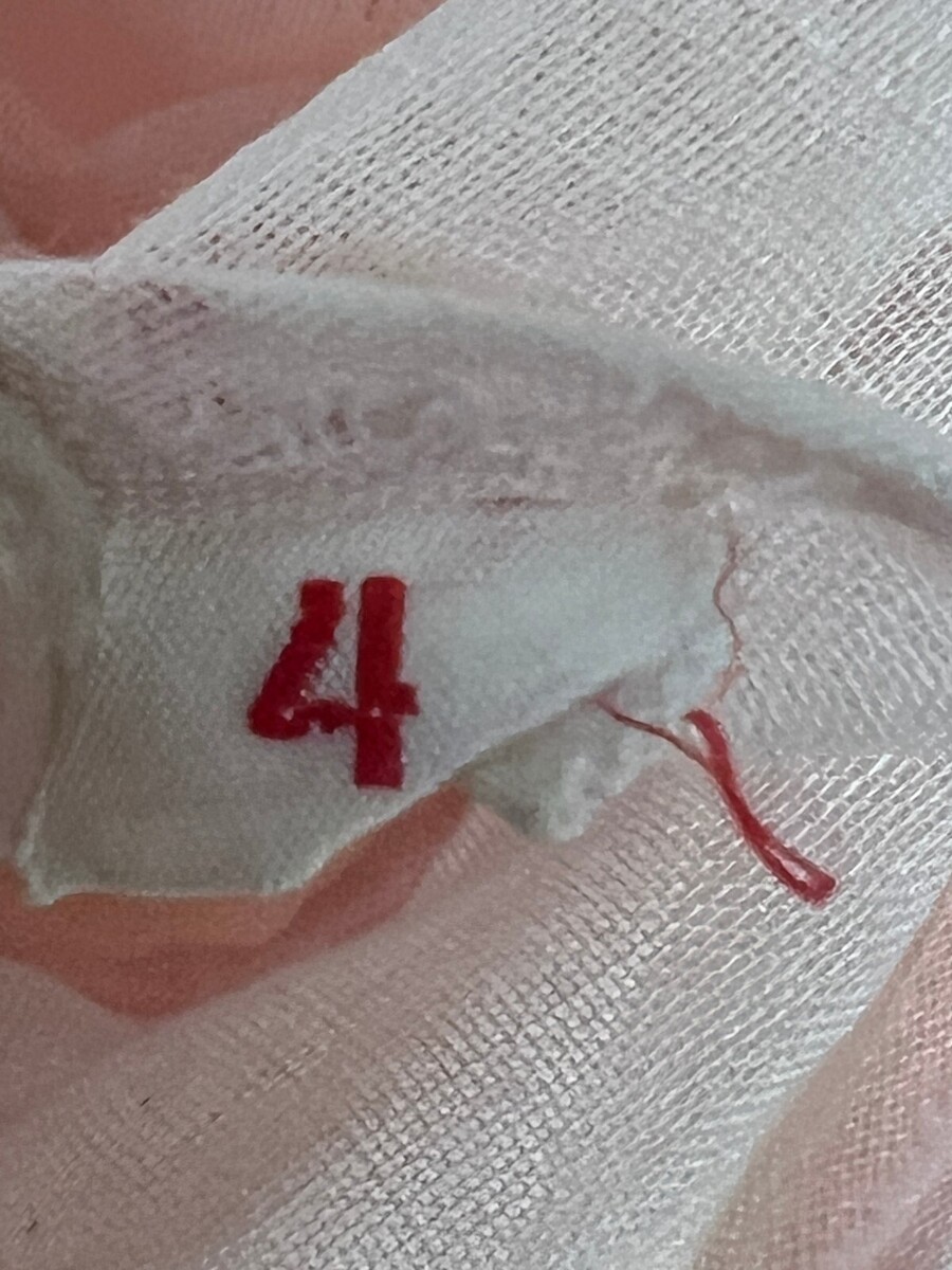 Good vintage condition overall. The fabric shows age yellowing from storage, which may or may not lift with a gentle soak. Otherwise no issues ? stitching is strong and garment is intact.