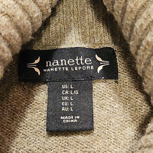 Nanette Lepore Cowl Neck Sweater Womens L Beige Wool Blend Tunic Long Sleeve