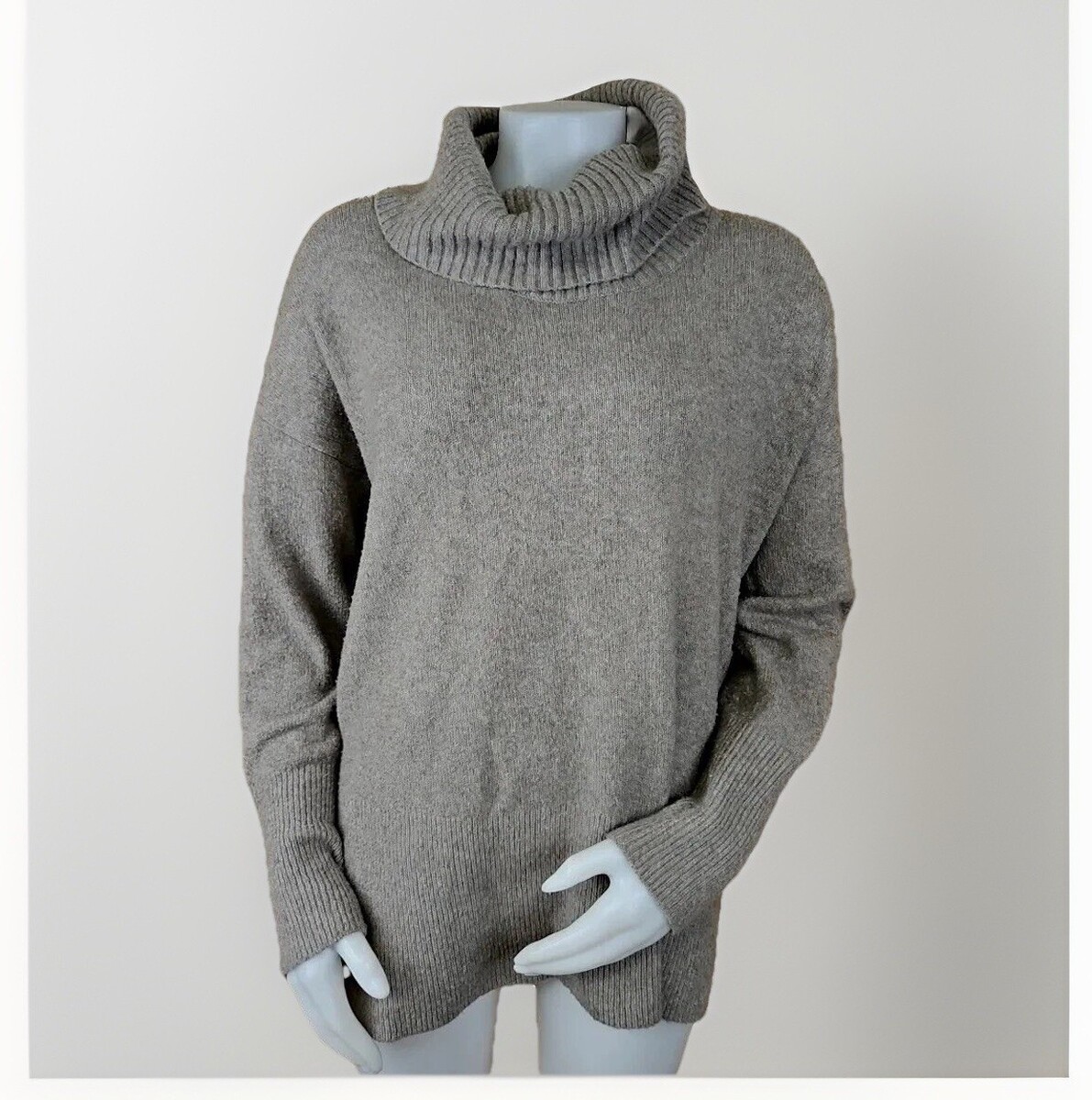 Nanette Lepore Wool Blend Beige Cowl Neck Tunic Long Sleeve Sweater