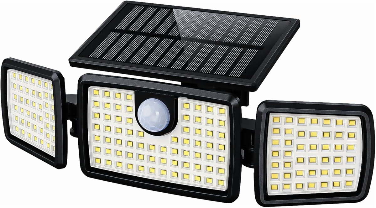 Professional Grade Solar Security Lighting for Complete Outdoor Illumination! This high-performance solar motion sensor light features three adjustable LED heads, an ultra-sensitive PIR detector, and 2500 lumens of brilliant 6500K white light. Perfect for driveways, porches, decks, pathways, and backyard security, this all-weather solar light provides reliable, wire-free lighting powered entirely by the sun.