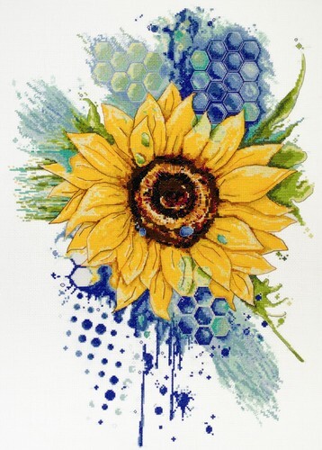 Cosmo Sunflower and Aster Seasonal Flower Arrangement Cross Stitch Kit.