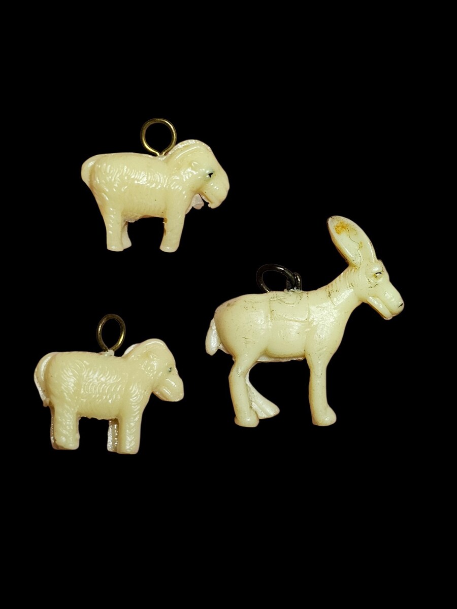 While similar items were commonly found as Cracker Jack?type prizes, no original packaging is present, so these are described accurately as Cracker Jack?era Japanese novelty charms, not attributed to a specific brand.