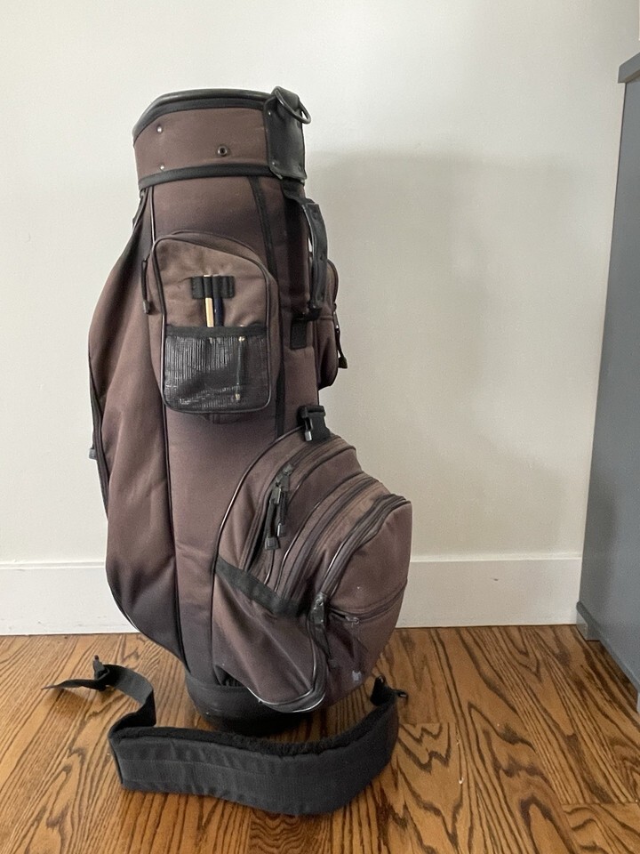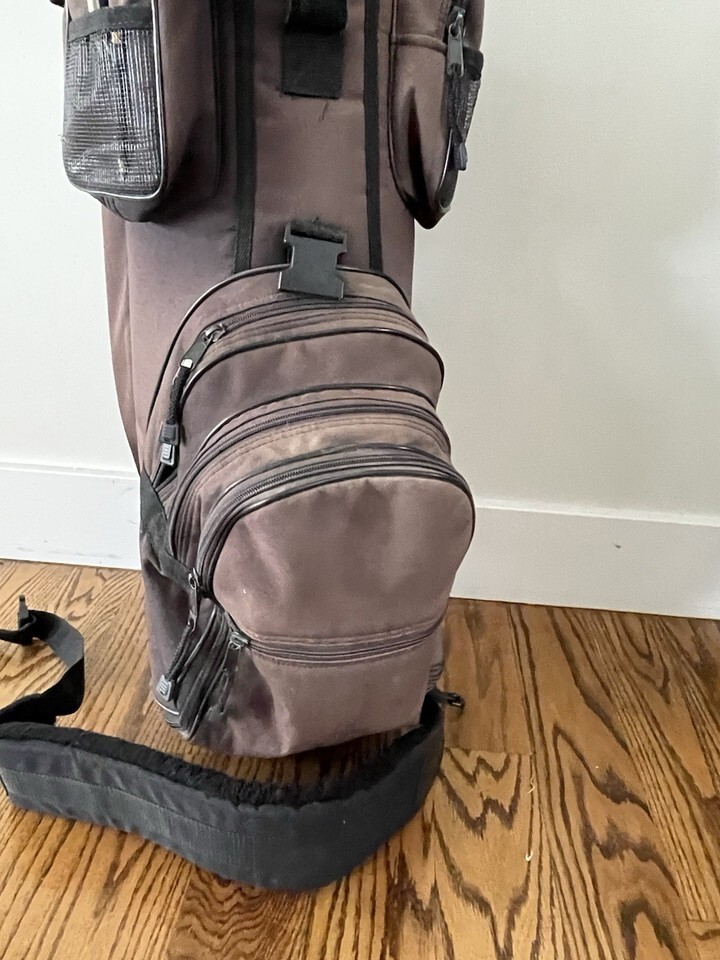 Unbranded Golf Bag Brown Black 6 Way Carry Or Shoulder Strap Zipper Pockets