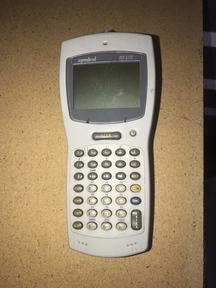Symbol PDT 6100 Pocket PC Kit Scanner. No power cord or charger. Unit only. Condition is used. Money back guarantee Shipped with USPS Priority Mail.
