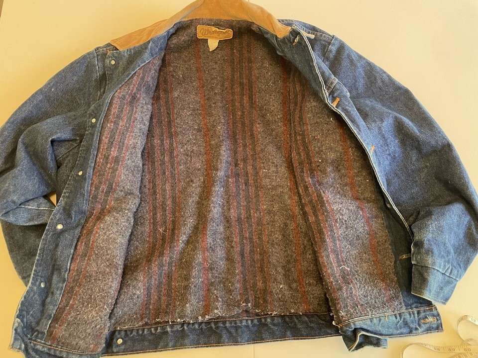 Vintage Wrangler M-159 Denim Trucker Jacket Mens Blanket Lined USA See Pics Size