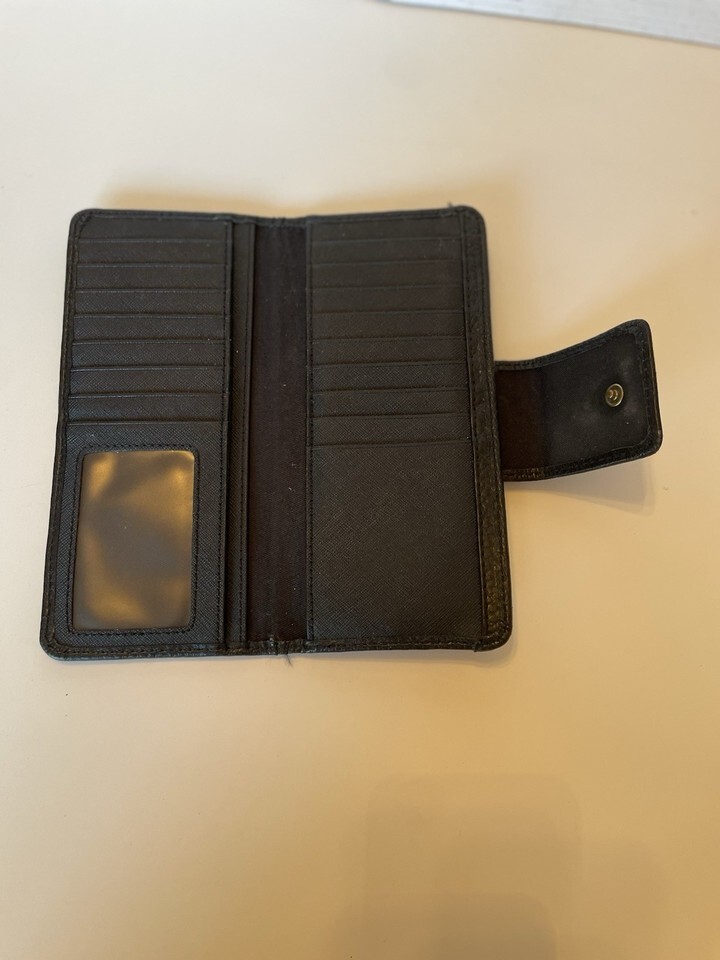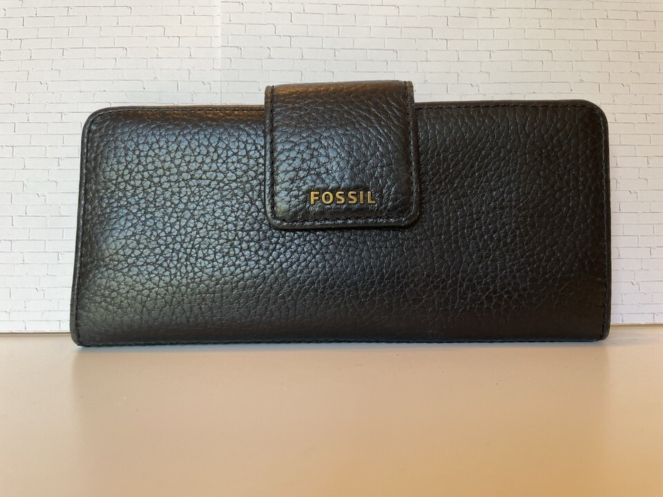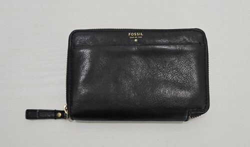 Fossil zip clutch Leather wallet Black 16 Card, 1 ID, 3 Lg, 1 Zip Pocket