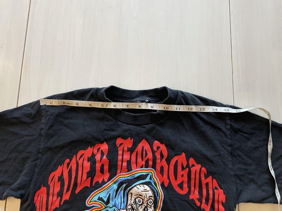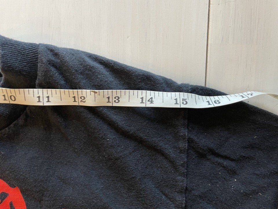 Tag has been removed so exact size is unavailable. Please SEE PICTURES ATTACHED FOR T SHIRT MEASUREMENTS.