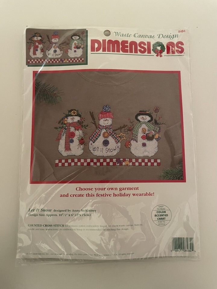 The Dimensions LET IT SNOW #8484 Cross Stitch Kit and SNOW PEOPLE (9) ORNAMENTS #9100 are perfect crafts for the holiday season. These kits include everything you need to create beautiful cross-stitch ornaments with a festive winter theme and a wearable holiday item of your choice. The brand Dimensions is known for quality and these kits are no exception, with bundled items like counted cross stitch fabric and needlepoint tools. Let it snow, let it snow, let it snow with these adorable cross-stitch ornaments and wearable.
