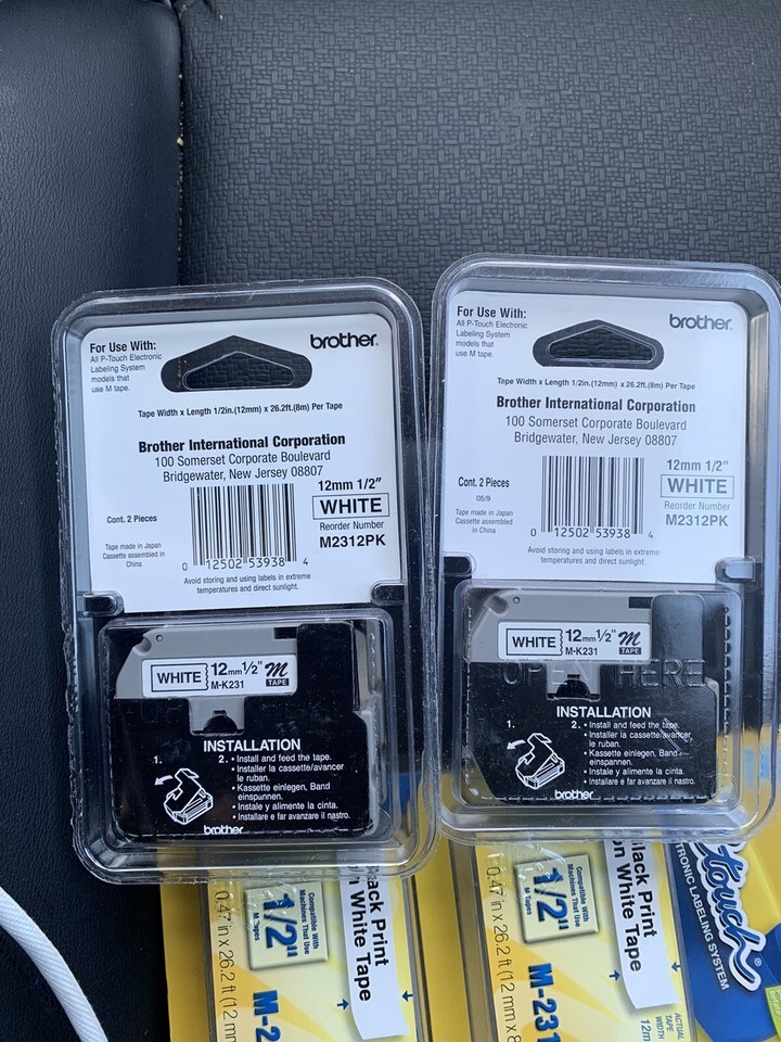 Lot Of 2 Double Packs 4 cartridges total. - P-Touch M-Tape 1/2 inch - BLACK on WHITE -- MK-2312PK.